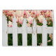 Tulipes hollandaises roses avec clôture blanche.