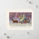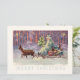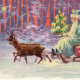 Merry Christmas from Vienna Woods! Santa’s small sleigh is pulled through a snowy forest by two delicate reindeer. The scene is aglow with lights from the little travelling Christmas tree. Coral, lavender and aqua colours in an abstract pattern create a wonderful theatrical background. This antique European illustration has gracefully travelled through time to decorate our twenty first century Christmas correspondence and gifts. The trendy colours and unique image are perfect for your holiday events.