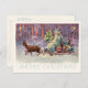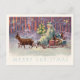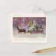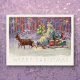 Merry Christmas from Vienna Woods! Santa’s small sleigh is pulled through a snowy forest by two delicate reindeer. The scene is aglow with lights from the little travelling Christmas tree. Coral, lavender and aqua colours in an abstract pattern create a wonderful theatrical background. This antique European illustration has gracefully travelled through time to decorate our twenty first century Christmas correspondence and gifts. The trendy colours and unique image are perfect for your holiday events. The unique postcard with trendy colours has a coordinating design on the reverse side.