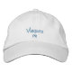 Vieques Puerto Rico hat or baseball cap with embroidered name of the town of Vieques and the initials PR for Puerto Rico. You can customize to other colours, styles and fonts or use as a template and just update the town name with your own text, as well as the PR initials.