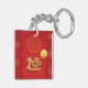 Golden Asian Papier coupé d'un Dragon avec un motif traditionnel rouge comme arrière - plan. Conception sur porte - clé acrylique carré avec des souhaits d'or en vietnamien et avec monogramme pour personnaliser en arrière. Vous pouvez facilement modifier le monogramme (police, couleur, taille et position) en cliquant sur le bouton personnaliser. Carte de voeux, carte postale, autocollant et tasse.