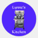 Sticker d'un vieux poêle. Arrière - plan bleu. Personnalisez avec votre nom. Dit : "La cuisine de Lynne." Changez le nom à ce que vous voulez qu'il dise. Correspond aux autres vieux produits de poêle dans ce magasin. Consultez les autres produits correspondants dans ce magasin.