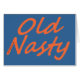 Les mots "vieux méchant" un charrier sur une marque populaire d'habillement. écrit dans les lettres oranges sur un arrière - plan bleu.