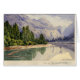 Watercolor painting of Yosemite Valley with trees lining a river with mountains in the background in what is now Yosemite National Park.