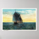 Casco Bay, Maine - View of a Sailboat off the Bay - Casco Bay, Maine was created in 1930. This image depicts scenes from Casco Bay, ME.