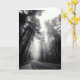 This black and white photo features a low angle view of Sequoia Trees in a forest in California.