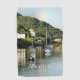 After a day of rain, the sun finally comes out and a rainbow appears in the sky, in this beautiful landscape from Aberdyfi harbour in Wales, with boats in the water and some of the village houses.