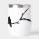 Colibri assis sur une branche d'arbre nu avec soleil en arrière - plan. Image noire avec une ombre portée. Image des deux côtés.