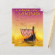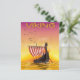 Viking longship sailing on the ocean or north sea during a beautiful sunset.