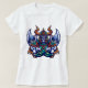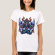 A fearsome Viking warrior, clad in heavy armour and wielding two axes, stands defiant. His skull-like face is adorned with horns and a menacing grin. His powerful physique is accentuated by his crossed arms, and his eyes burn with a fierce intensity. The overall design conveys a sense of strength, aggression, and a warrior's indomitable spirit.