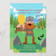 Celebrate your little Viking boy's birthday with this colourful invitation! It features a Viking warrior man with a horned helmet and sword. He is calling all kids to a party in front of a Viking house while holding a balloon. In the back, there's a Scandinavian landscape and a Viking thatched roof house decorated with a skull and dragon heads. In the front, there's a sign that reads PARTY, the boy's wolf pet, and yellow balloons. It's ideal for a Viking-themed birthday party! This Boy Birthday Party invitation is easily customized for your event by adding your details.