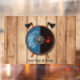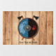 Rauð hönd ok örn. A Viking shield and crossed battle axes superimposed on a wooden plank wall background image. The shield is black on the left side with a red right hand print. The other side of the shield is blue with a white eagle in Celtic-Norse style. Customize by adding your own text.