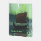 A slightly stylized image of a viking longship sailing at night under the Northern Lights there a couple of icebergs; most of the crew is asleep. Add your own text.