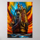 colourful art of a viking ship on the sea with two vikings on top of the ship. This is a AI generated art.