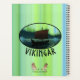 A slightly stylized image of a Viking longship sailing at night under the Northern Lights there a couple of icebergs; most of the crew is asleep. Text reading "VIKINGAR" (Vikings) also appears. Customize by adding your own additional text.