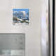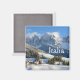 Aimant frigo souvenir du village St. Magdalena (Père Noël Maddalena) avec son église dans la Villnoesstal au Tyrol du Sud, Italie, dans la neige pendant l'hiver avec le texte : 'Italia'.
