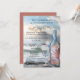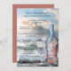 Un beau billet ou une invitation à la fête de mariage avec une peinture originale d'une bouteille de vin avec deux verres au bord de la plage. Idéal pour une réception uniquement ou une fête après le mariage. Très agréable pour une fête mariage à thème ou côtière.