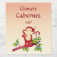 Personnalisez facilement le texte sur ce étiquette de bouteille de vin qui comporte un mignon singe rouge sur la branche d'un arbre avec des feuilles verts.