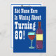 Vin Environ 80ème anniversaire fête invitation drôle. Une grande invitation pour un amateur de vin qui a 80 ans. Il dispose d'une bouteille de vin et d'un verre de dessin animé. C'est parfait pour quelqu'un qui veut "vin" à l'âge de quatre-vingts ans.