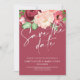 Cette invitation Save the date, est basée sur un arrière - plan rose poussiéreux avec police d'écritures accentuée.