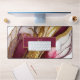 Cette conception abstraite d'encre d'alcool fluide donne le ton parfait à tout professionnel d'affaires. Dans les tons du blanc au rouge vif, rehaussé d'or scintillant, le tapis de bureau est présenté ici et offre un modèle pour ajouter facilement votre monogramme et votre nom. Cherchez ID1018 pour voir d'autres produits avec ce design accrocheur, y compris les cartes de visite correspondants.