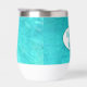 C'est l'heure du "Wine O'Clock" à la plage avec ce cave à vin en acier inoxydable branché qui aide à garder votre boisson au frais. La couleur Arrière - plan comprend une surface d'eau bleu marine. Sélectionnez votre style de croustillant à vin.