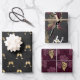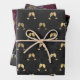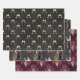 Vintage Paris deep burgundy - wine red and shimmering gold pattern wrapping paper in three different wine-themed styles including wine glasses, an art deco lady, and grapes.