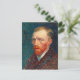 This postcard features one of Vincent Van Gogh's 1887 self portraits. This one has a striking blue-green and red speckled background. For more like this, please visit our store!