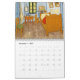 Vincent van Gogh Collection 2014 has 12 post impression masterpiece s by the world famous Dutch artist; January Starry Night over the Rhone 1888 February Wheat Fields with Cypresses 1889 March The Carriage 1890 April Seascape at Saintes Maries 1888 May Branches with Almond Blossom 1890 June The Langlois Bridge at Arles 1888 July Irises 1889 August Seascape at Saintes Maries 1888 September Wheat Field with Crows 1890 October Village Street and Stairs with Figures 1890 November Bedroom at Arles 1889 December Starry Night 1889