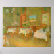 Interior of a Restaurant (1887) by Vincent van Gogh is a vintage Post Impressionism fine art daily life painting. The inside dining room of a cafe or bistro with formal tables with tablecloths, chairs and flowers in vases to make for an elegant dining scene.