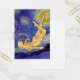 The blue night sky is filled with swirling clouds, stars, and a bright crescent moon.
