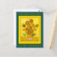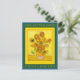VINCENT VAN GOGH ...SUNFLOWERS Postcard ... Vincent van Gogh Sunflowers Painting (repetition of 4th version, yellow background, August 1889, less than one year before his death at age 37 by suicide ... he shot himself in the chest in a wheat field he had been painting ... dying 30 hours later) Faux Canvas Print ... Vincent Willem van Gogh (30 March 1853 – 29 July 1890) was an important Dutch Post-Impressionist painter who has become one of the most famous in the world of art. In his own life time he was considered a madman and a failure ... no one buying his paintings ... but, after his tragic death, became famous and appreciated as the typical tortured artist ... so that, now, his paintings are each worth many millions. According to his brother Theo, Vincent's last words were "The sadness will last forever". His Sunflowers series were begun in August 1888 in anticipation of his friend the famous painter Paul Gauguin visiting him at The Yellow House (in Arles, France) where he filled a room with his bright Sunflowers hoping Paul Gauguin would be impressed enough to stay there with him ... which Gauguin actually did. This gave van Gogh great hope and passion to paint even more. Gauguin's single painting there was of Vincent van Gogh "The Painter of Sunflowers" ... But, by December, their relationship began to deteriorate, van Gogh, desperately worried Gauguin was planning to leave him ended up cutting off part of his own left ear with a razor after Gauguin had left "for a walk" and did not return that night. Then, van Gogh wrapped up the ear and delivered it to a woman at a brothel the two men had frequented. Gauguin then left even as van Gogh was asking for him. By May 1889, Vincent van Gogh volunteered himself into an asylum where he continued to paint ... especially, further versions of his earlier works such as Sunflowers. By May 1890. Vincent van Gogh moved to the Paris suburb Auvers-sur-Oise to be closer to his brother Theo as well as to his doctor friend Dr. Paul Gachet. There, he painted Wheatfield with Crows and it is thought that it was in that field where he shot himself in his chest 27 July 1890. He died 29 July 1890.