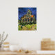 The Church at Auvers (1890) by Vincent van Gogh is a vintage Post Impressionism fine art architectural religious painting. A woman walking along a path towards the village chapel with beautiful stained glass windows. A daily life architecture scene.