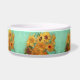 Artistic beautiful floral vintage fine art painting featuring twelve sunflowers in a vase against a turquoise background.