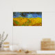 Wheat Field with Crows by Vincent van Gogh is a vintage fine art post impressionism nature landscape painting. A farm with a field of wheat with tire tracks or a road through the centre. A flock of birds, black crows, are flying in the dark night sky. Wheatfield with crows is one of Van Gogh’s most famous paintings and probably the one most subject to speculation. It was painted in July of 1890, in the last weeks of Van Gogh’s life.