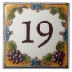 "custom house number plate", "personalized house no plaque", "personal customized text sign", "vineyard grapes ceramic tile", "wine country grape vine", "purple yellow green plant art", "botanical summer vacation nature", "post mail postage mailing address", "napa valley holiday home signage", "decorative rustic winery farm villa"