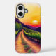 Bismillahir Rahmanir Rahim. This beautiful watercolor-style design captures the serene beauty of a vineyard at sunset. The art features rows of lush grapevines leading the eye down a rustic dirt path toward a vibrant, colourful sky. The warm, inviting colours of the sunset contrast beautifully with the deep purples of the hills and the bright greens of the vines. This peaceful landscape is perfect for wine lovers, travelers, or anyone who enjoys the rustic charm of the countryside.