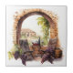 Ceramic tile is shown with a lovely watercolor print of a vineyard.