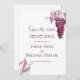 Vineyard Wedding Save the Date with modern calligraphy and grapes in burgundy red colour.