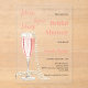 A modern, stylish and glamourous invitation for a Vino before Vows Bridal Shower. A clear, transparent background with a glass, flute with pink bubbles and pearls. The name is written with a modern hand lettered style script. Personalize and add your party details.