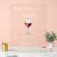 Panneau de bienvenue élégant et simple en acrylique clair rose Vino Before Vows pour la fête de fiançailles - Organisez-vous une fête de fiançailles ou un brunch de dégustation de vins sur le thème du vin avec la future mariée ? Ce panneau de bienvenue élégant et minimal pour la fête de fiançailles présente un verre à vin avec du vin rouge sur un fond clair et transparent. Les polices de caractères blanches manuscrites et capitales ajoutent une touche féminine et romantique. Personnalisez ce modèle de panneau de bienvenue pour la fête de fiançailles avec vos propres détails d'événement.