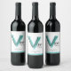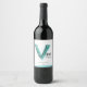 Watercolor V wine label reads vino, ideal for Italian wines and wines grown by Italians in aqua green blue. Ideal for sparkling wines like Pét-nat. Personalize with your own wine details. Art and design by www.mylittleeden.com