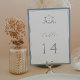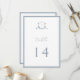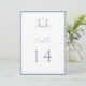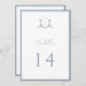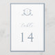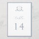 Élégant monogramme mariage de crête botanique, carte numéro de table. crête d'inspiration vintage ornée de branches botaniques. Caractéristiques, élégante typographie bleu poussiéreux style design mélange de script et de type gras. Veuillez noter que les cartes de numéro de table doivent être commandées individuellement.