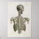 Vintage 1853 anatomical plate of the human skeletal system. Posterior view of the skeleton showing the rib cage, shoulder joints, spinal column and skull.