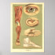Vintage human anatomy print of the eye, ear, hand, leg and foot.