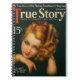 Capture the allure of vintage storytelling with this exquisite notebook featuring an authentic 1930s True Story magazine cover! This stunning design showcases a gorgeous auburn-haired beauty with cascading curls against a rich emerald background - a masterpiece of golden age illustration that epitomizes classic glamour.