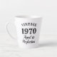 Vintage 1970 | aged to perfection funny latte mug. Cool big letter typography template with birth year date. Customizable year of established number. Funny surprise 50th Birthday gift idea for legendary dad, best husband, world's greatest uncle, grandpa, brother, friend, co worker, coach, colleague, boss, teacher etc. Age humour for him or her. Born in year 1970. Custom sports presents for him or her. Unique gifts for men and women. Also great for Christmas or Father's Day. Cone shaped cup in small and large size. Printed on both sides. Great for home and office. Customizable for any age.