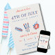 Vintage 4th of July patriotic party celebration invitation. Having a backyard BBQ for 4th of July? Host an Independence Day party this summer the smart way. Fourth of July invite is easy to customize. They are either printable or available in instant digital download. Minimal vintage details, fireworks, drinks and hot dog with red white and blue striping on the reverse gives this a cute and festive aesthetic. You can find more coordinating party supplies to curate a red, white and blue, 4th of July patriotic party in the Vintage Fireworks 4th of July Patriotic Party Celebration Collection in the Beautifully Abstract store.