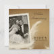 Elegant 50th Anniversary Party Invitations with elegant vintage retro script letterpress style text and accented with a fancy white feather plume (part of the image -- not a real feather), with photo insert. Upload your photo and add the names, date, and details. Can be easily customized for many special occasions and happy milestone celebrations -- 25th, 30th, 45th, 60th, 65th, 70th anniversary parties, birthday party, weddings, save the date, or any unique event. Coordinating postage and thank you cards available upon request.