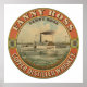 Vintage advertisement for Fanny Ross copper distilled whiskey. Image of a whiskey barrel label depicting a steamboat travelling along a river with Fanny Ross lettered on the side of the boat across the paddlewheel.
